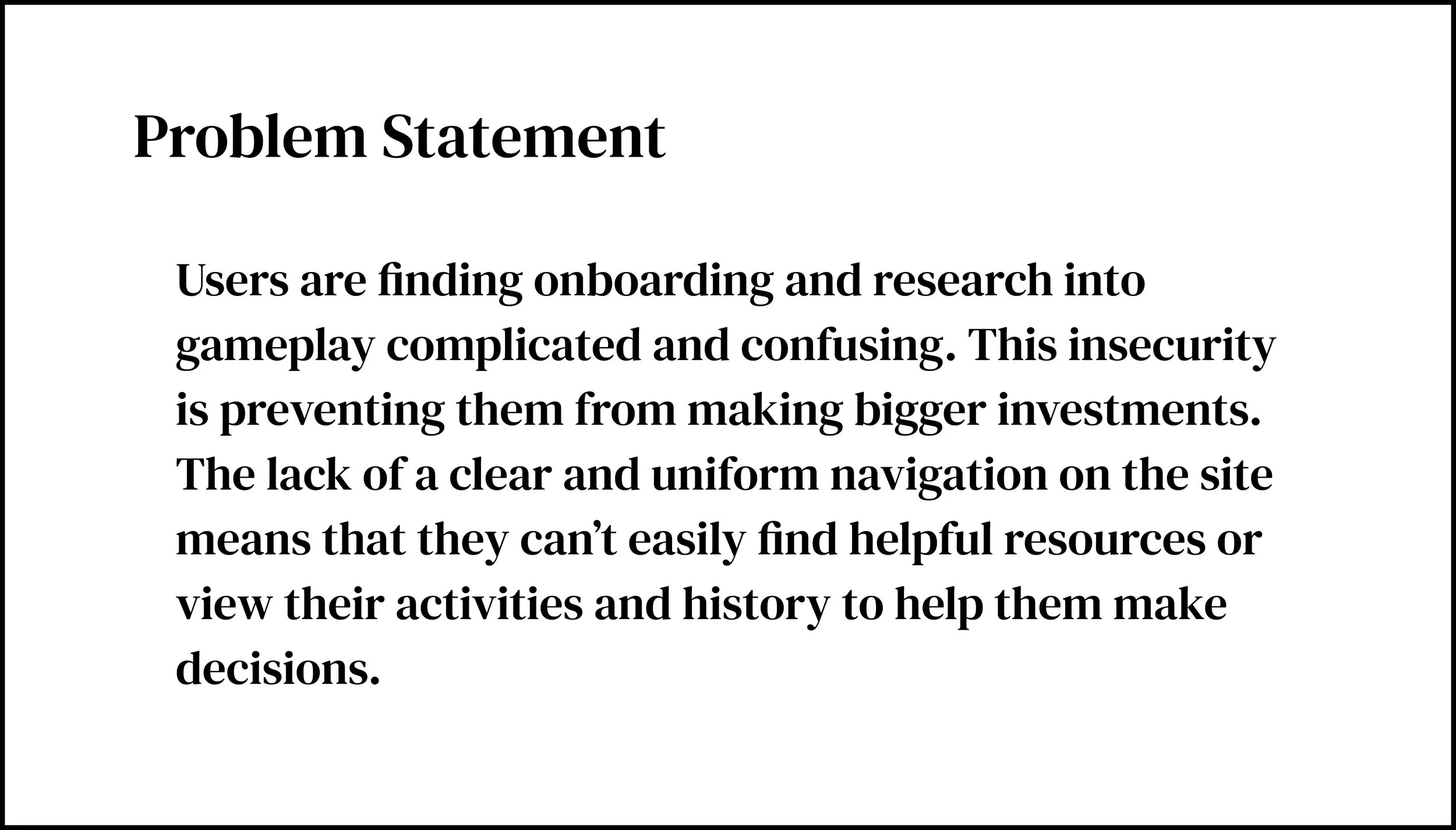 Upon reviewing the brief provided by stakeholder, it became evident that the primary challenge lies in the onboarding process, as well as the overall unclarity of the game structure and user flows. Our additional user research further confirmed these findings, highlighting that new users face significant barriers when trying to engage with the game.