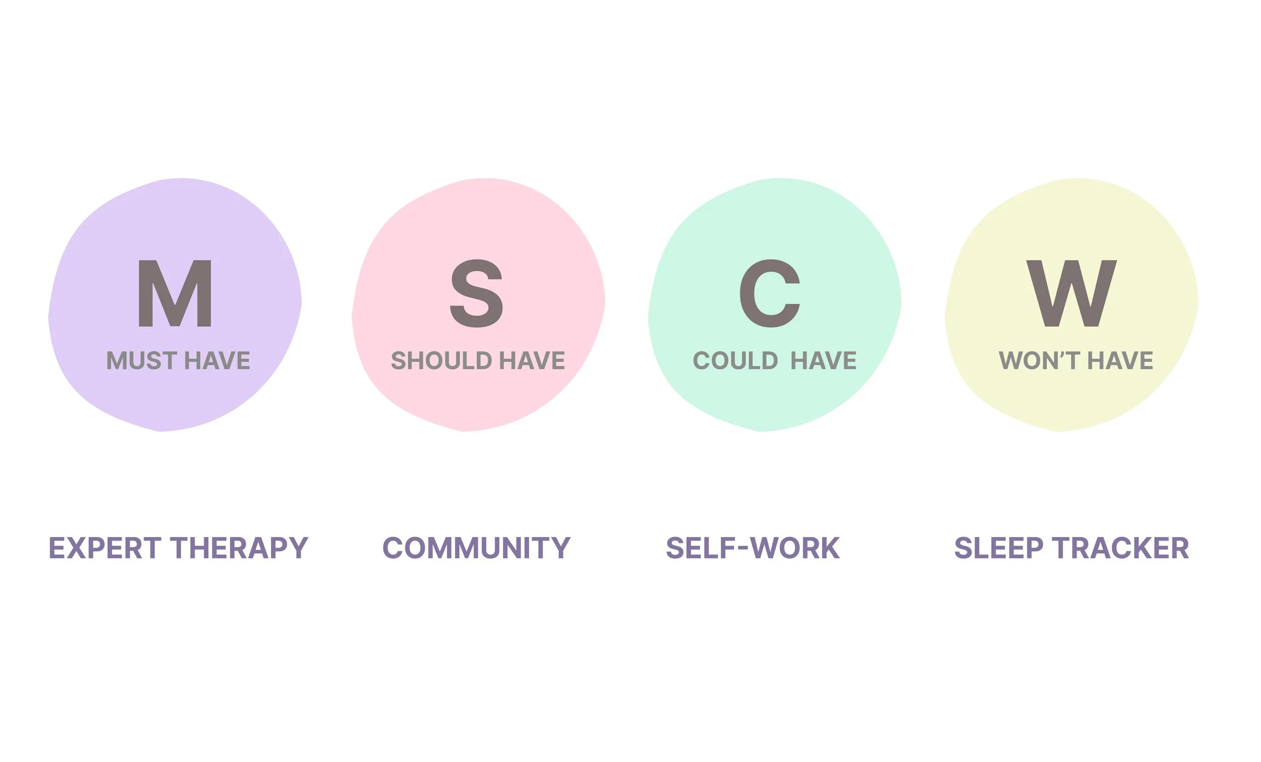 Using the MoSCoW Method, I made a retrospective of the survey and research findings. This helped me to decide what features are crucial for this app.